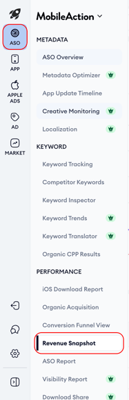 - First, go to ASO Intelligence > Revenue Snapshot.