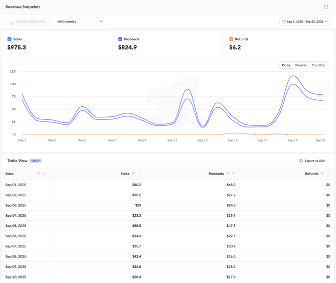 Revenue Snapshot replaces platform switching and manual exports with one page that’s ready to use. Whether you’re explaining a sudden revenue jump, tracking refunds, or preparing client-ready charts, this view gives you a straightforward way to connect growth and monetization.