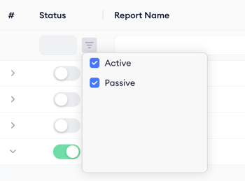 You can filter for Active and Passive reports if you click on the filter icon right next to the Status column.