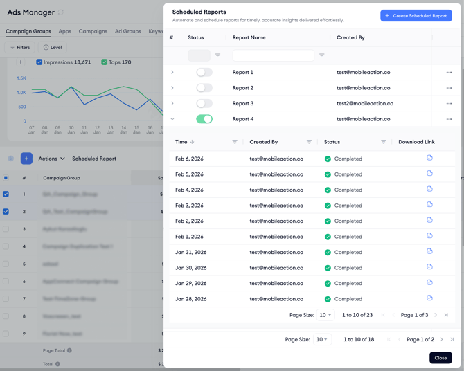 Scheduled Reports helps you send performance data automatically on a recurring basis. It’s useful for app marketers, UA managers, and analysts who regularly share reports with teammates or stakeholders and want a consistent, hands-off setup.